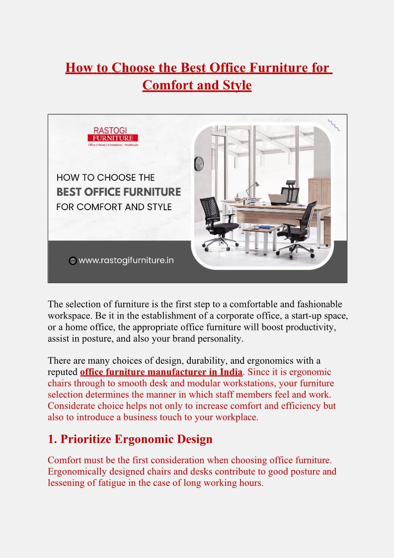 How to Choose the Best Office Furniture for Comfort and Style