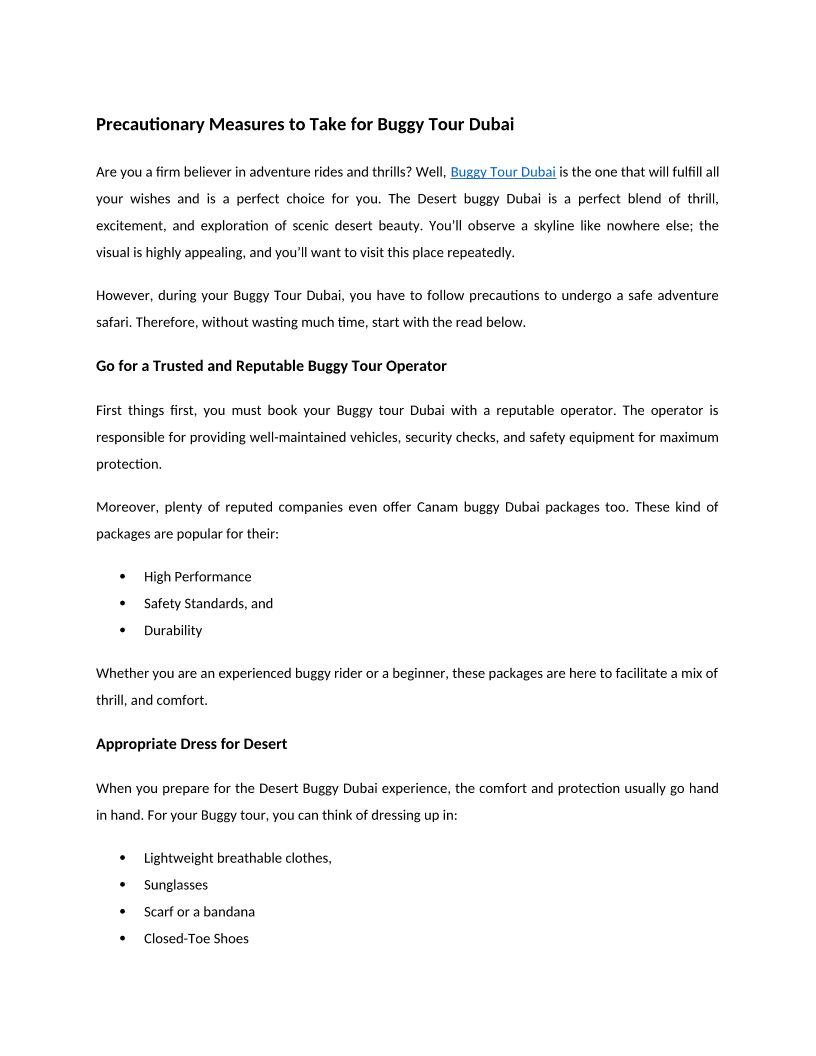 Precautionary Measures to Take for Buggy Tour Dubai