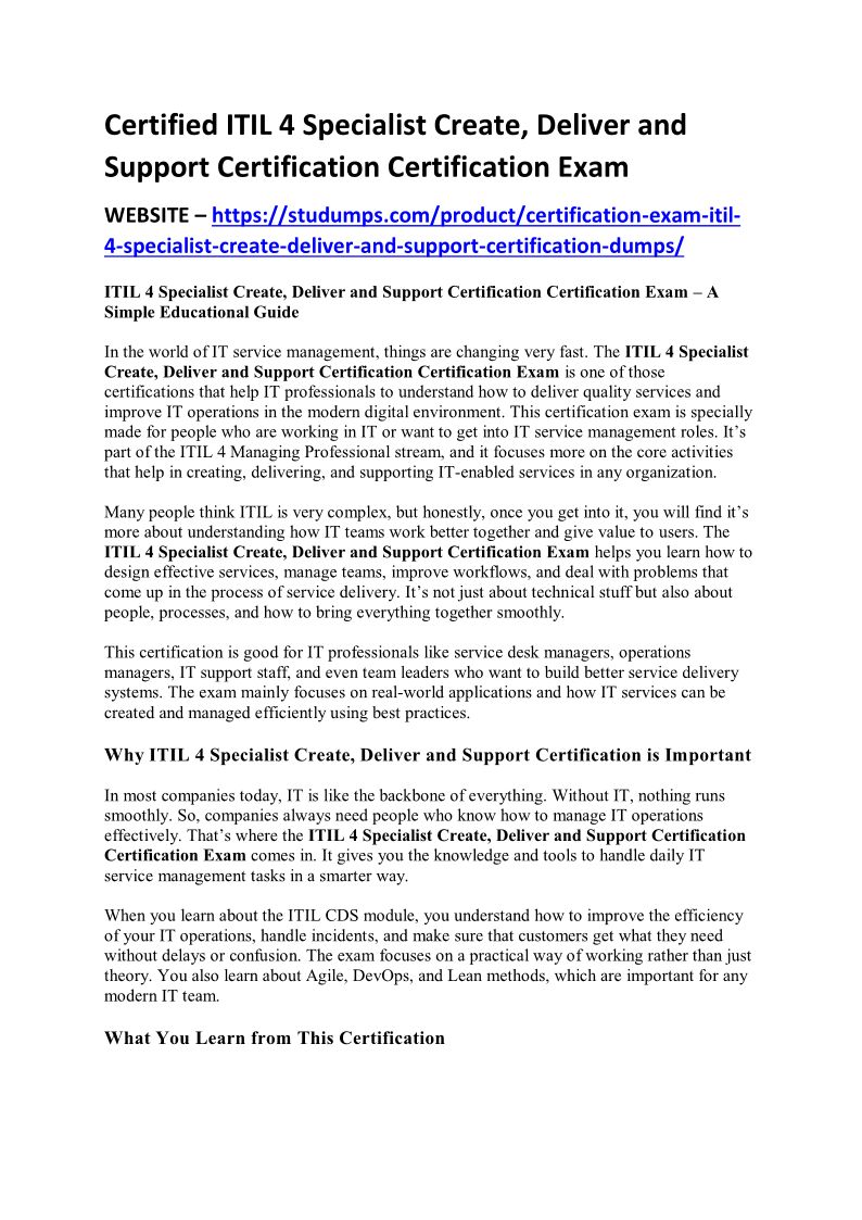 Certified ITIL 4 Specialist Create, Deliver and Support Certification Certification Exam