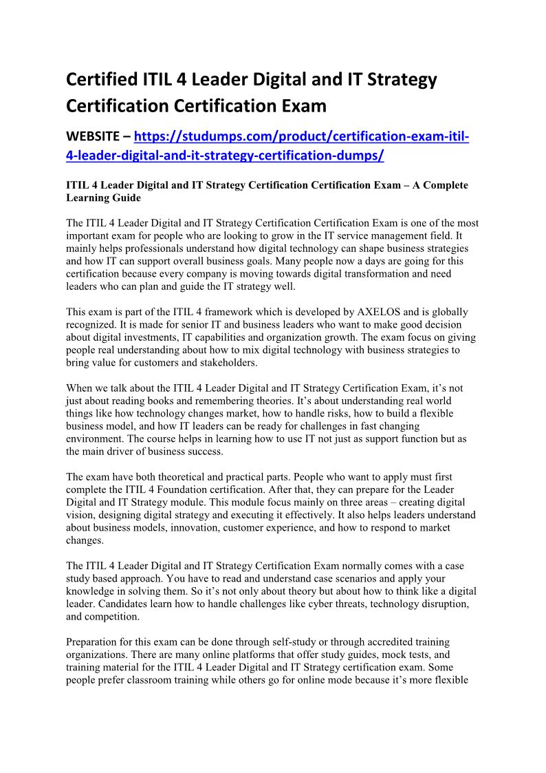 Certified ITIL 4 Leader Digital and IT Strategy Certification Certification Exam