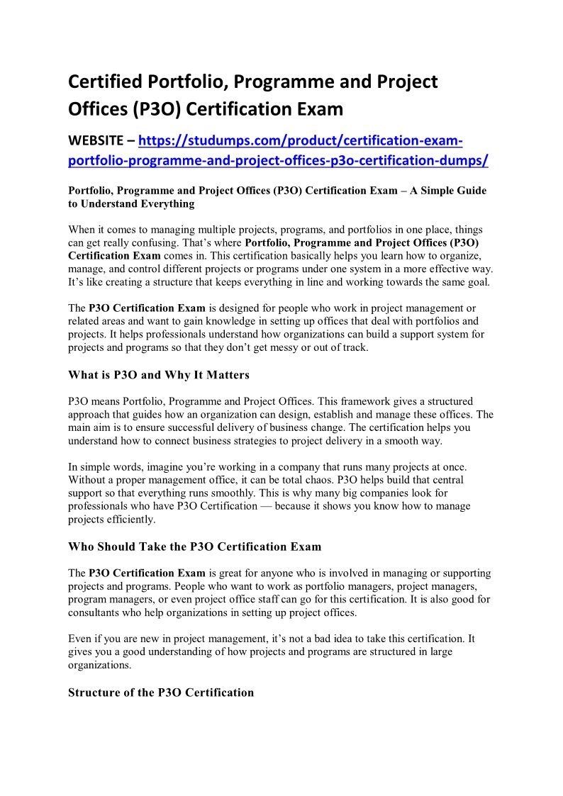 Certified Portfolio, Programme and Project Offices (P3O) Certification Exam