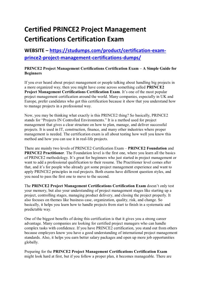 Certified PRINCE2 Project Management Certifications Certification Exam