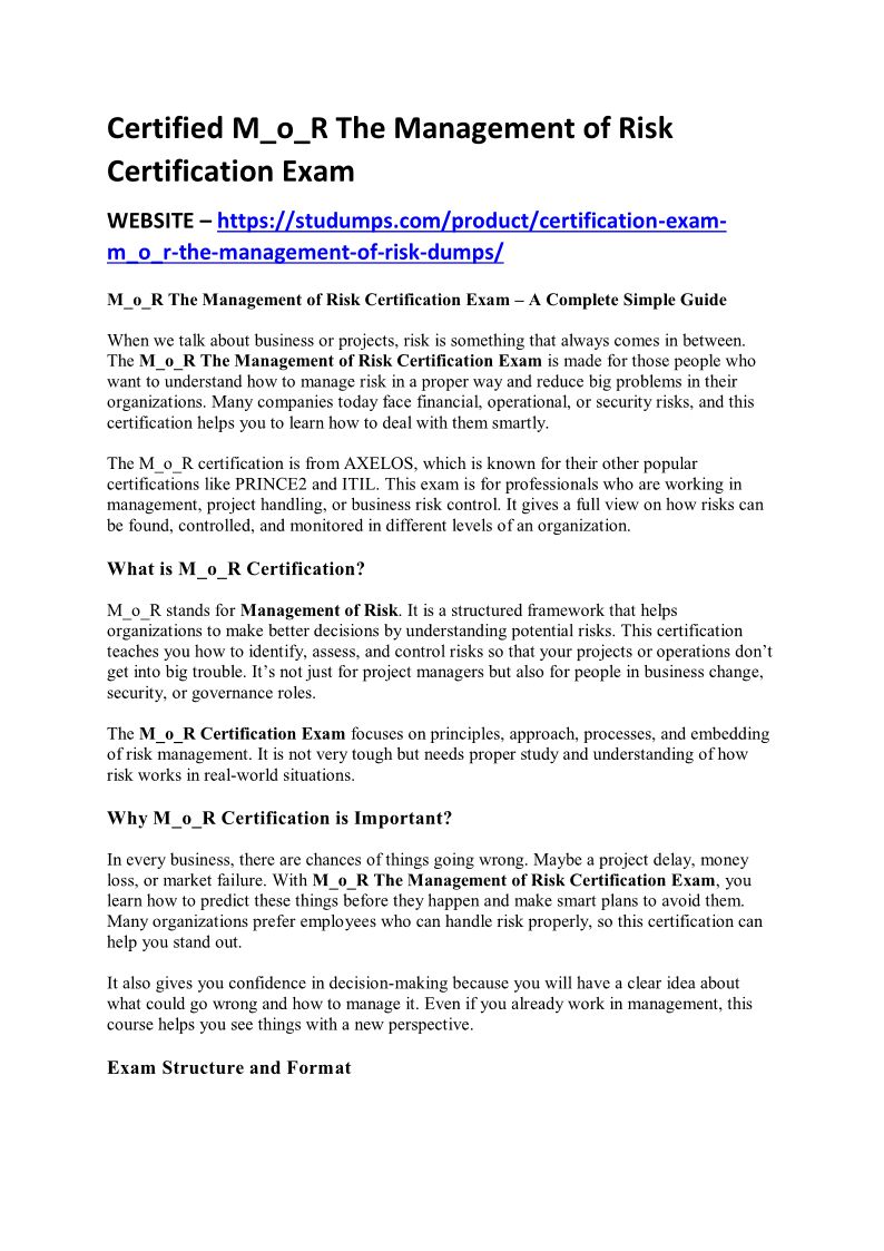 Certified M_o_R The Management of Risk Certification Exam