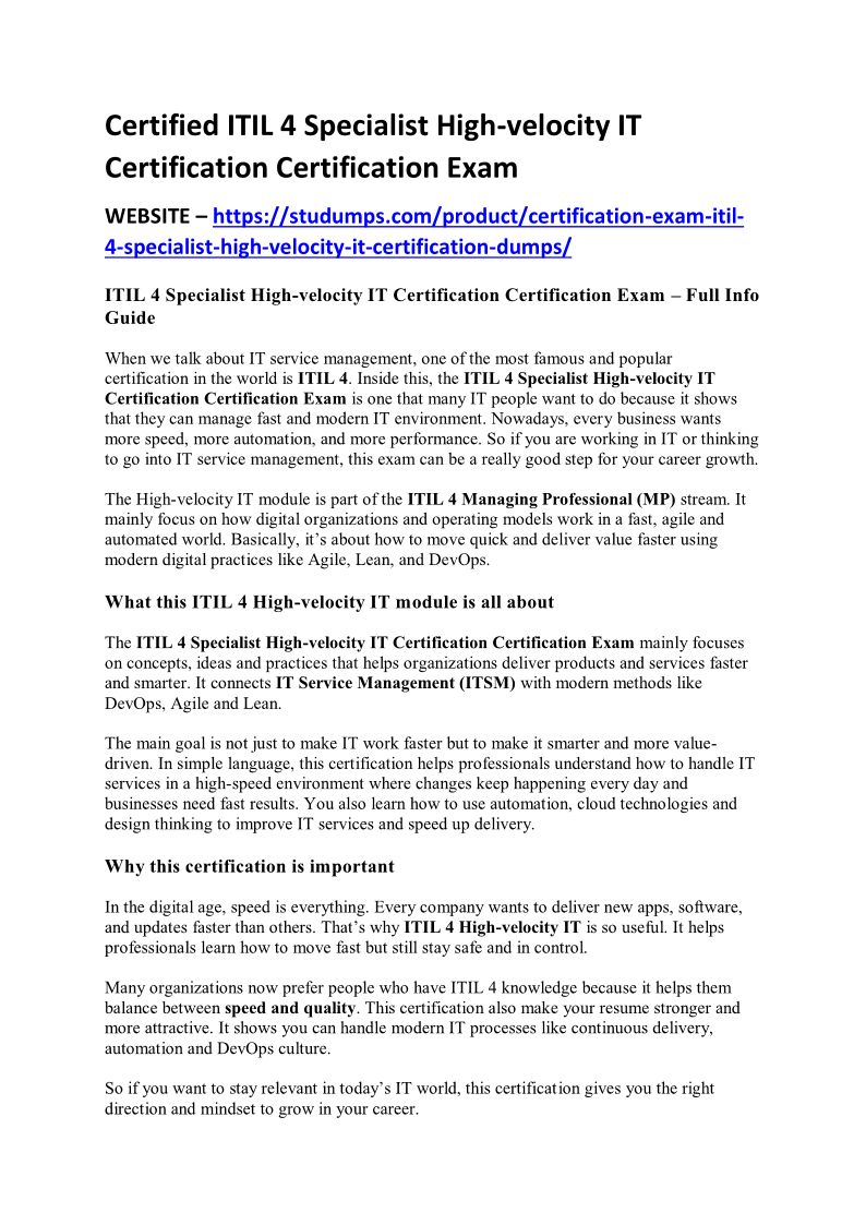 Certified ITIL 4 Specialist High-velocity IT Certification Certification Exam