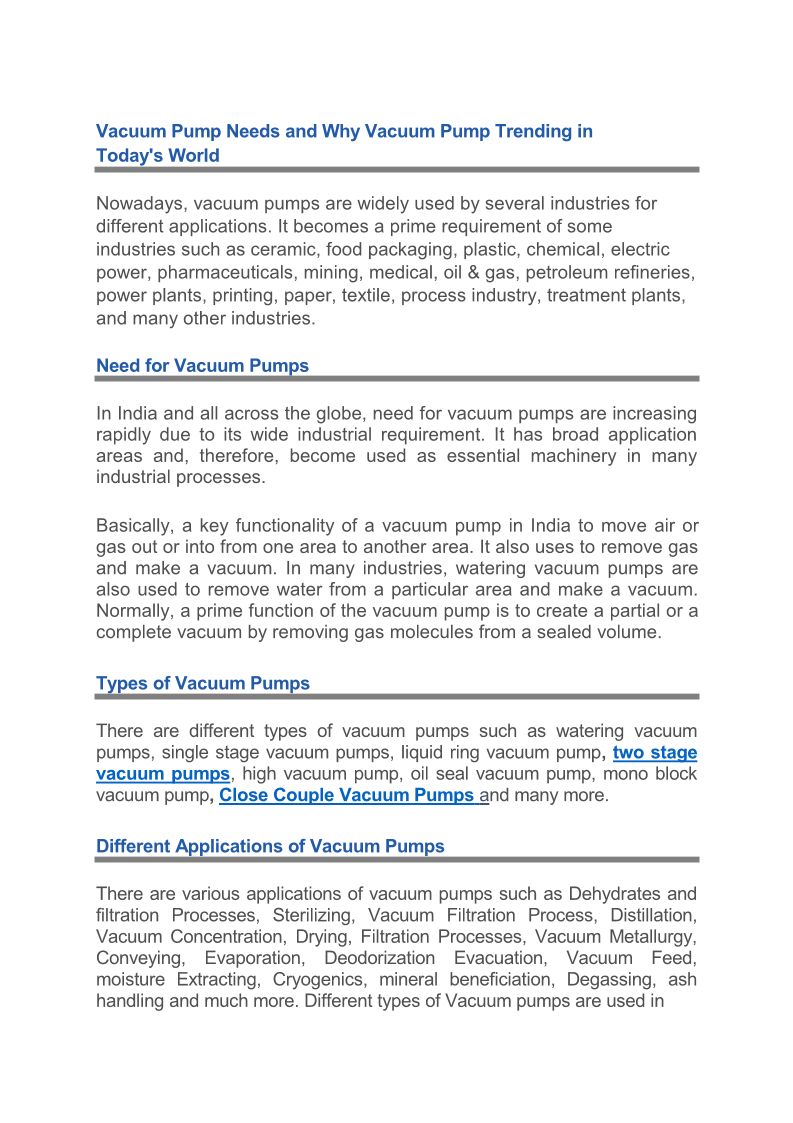 Vacuum Pump Needs and Why Vacuum Pump Trending in Today 1