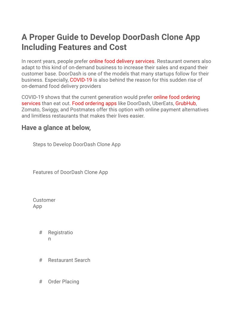 A Proper Guide to Develop DoorDash Clone App Including Features and Cost