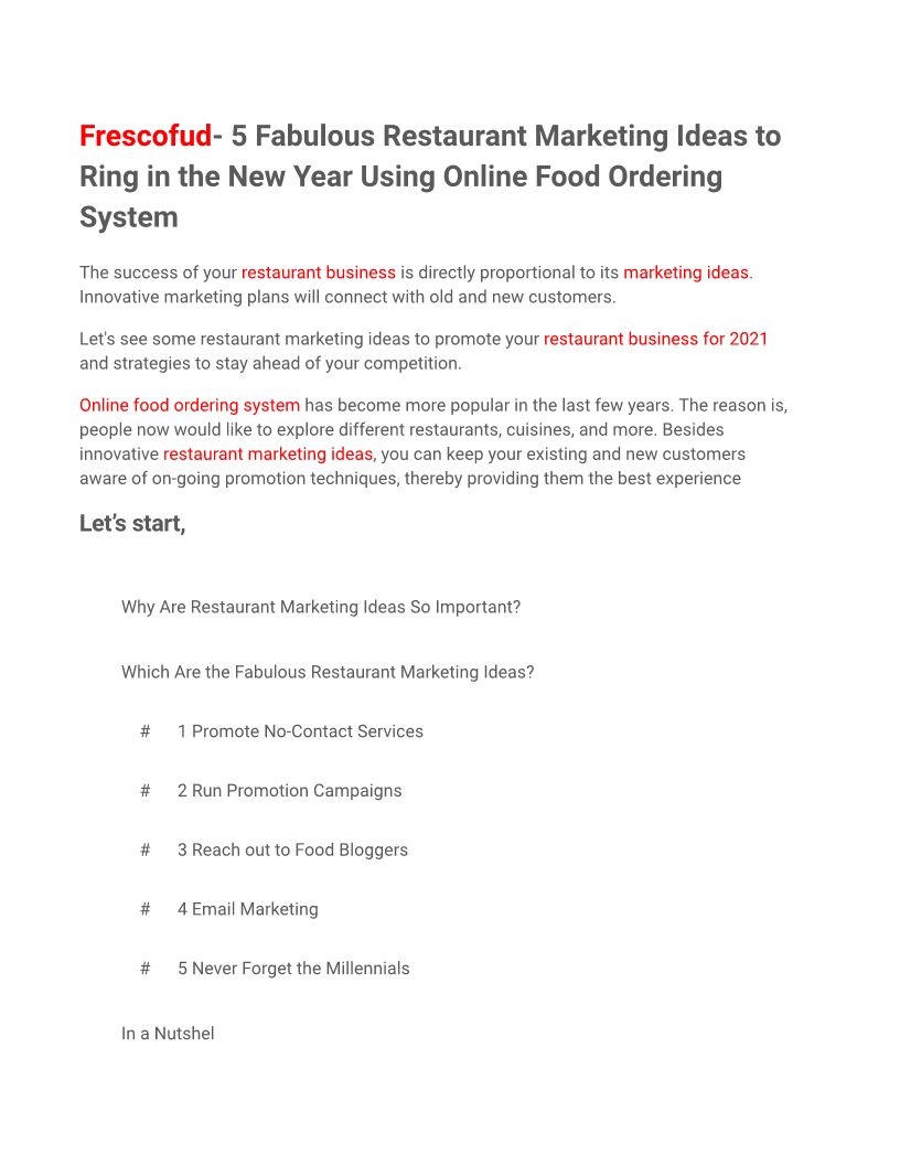 5 Fabulous Restaurant Marketing Ideas to Ring in the New Year Using Online Food Ordering System
