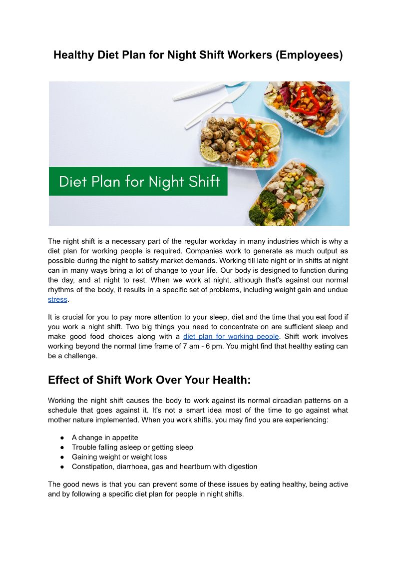 Healthy Diet Plan for Night Shift Workers (Employees) - Go Moringa