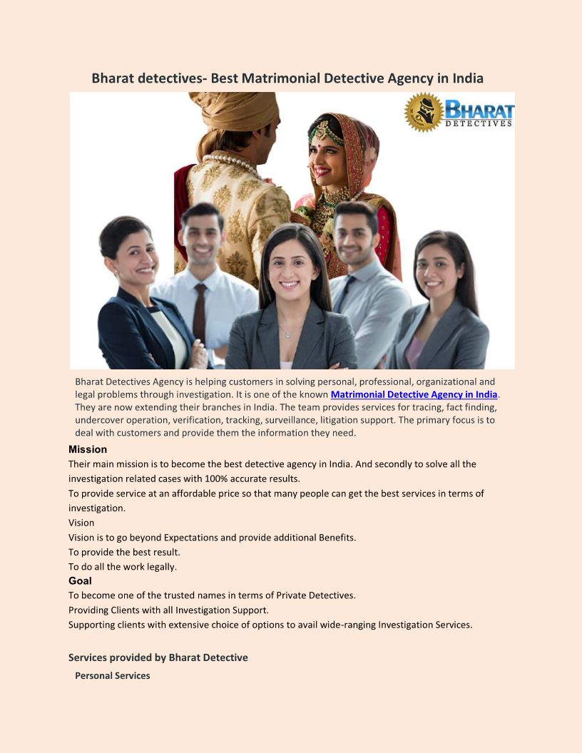 Bharat detectives- Best Matrimonial Detective Agency in India