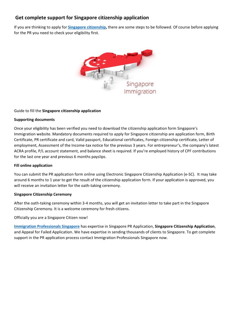 Get complete support for Singapore citizenship application