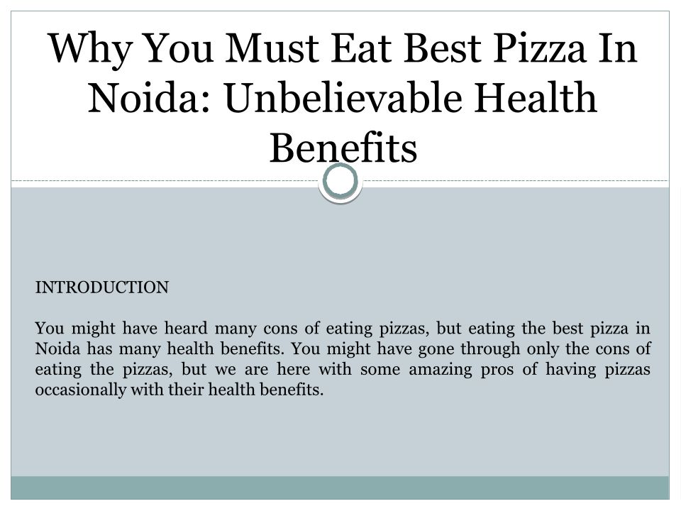 Why You Must Eat Best Pizza In Noida Unbelievable Health Benefits