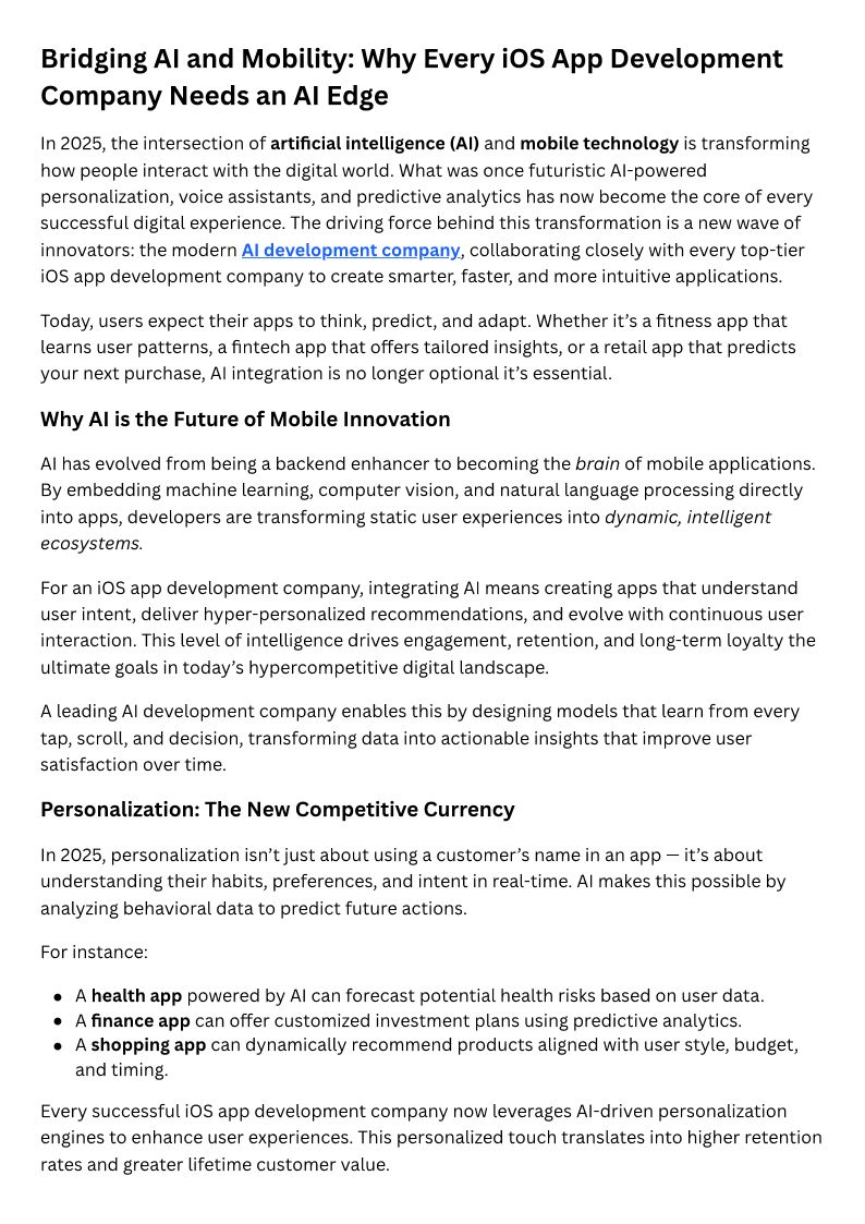 Bridging AI and Mobility Why Every iOS App Development Company Needs an AI Edge