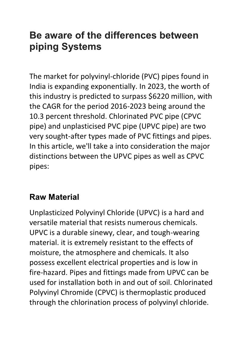 Be aware of the differences between piping Systems