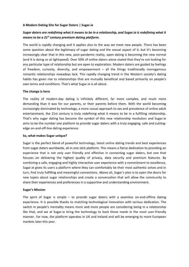 A Modern Dating Site for Sugar Daters | Sugar.ie