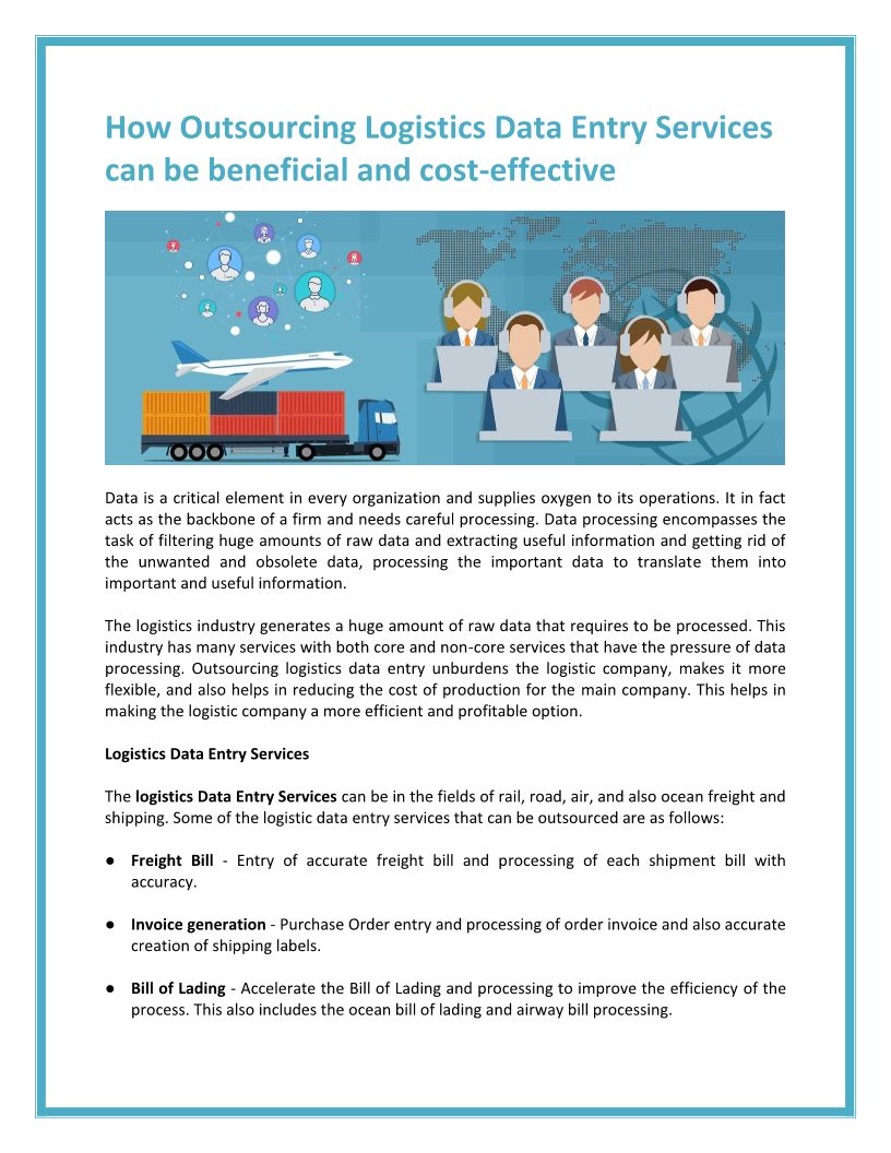 How Outsourcing Logistics Data Entry Services can be beneficial and cost-effective