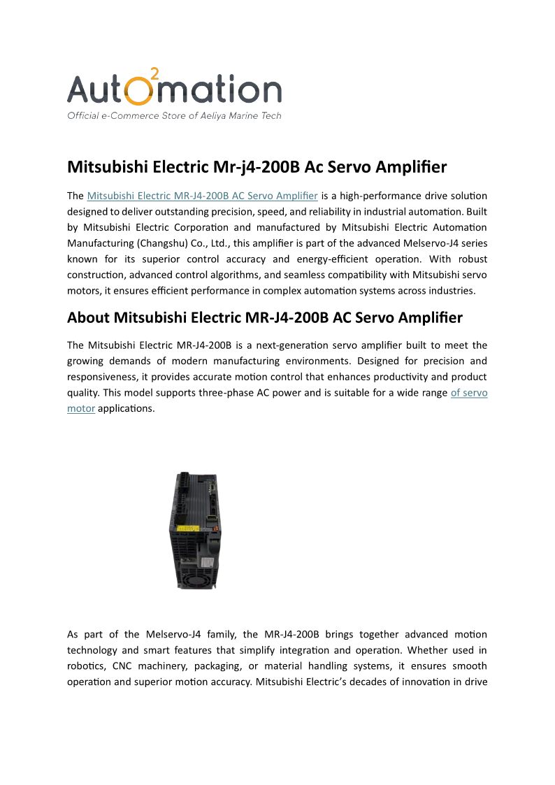 Mitsubishi Electric Mr-j4-200B Ac Servo Amplifier
