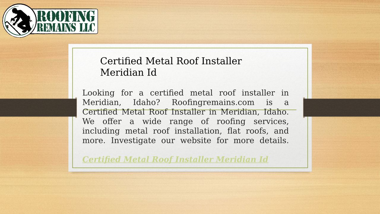 Certified Metal Roof Installer Meridian Id Roofingremains.com