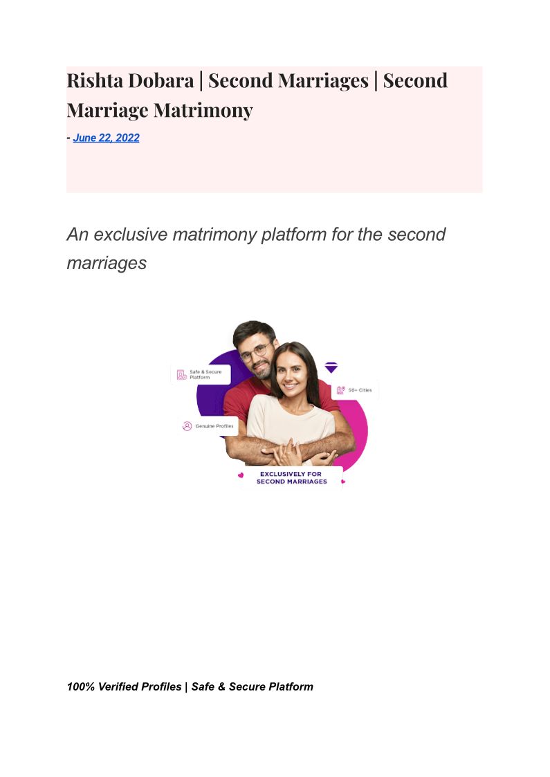 Rishta Dobara | Second Marriages | Second Marriage Matrimony