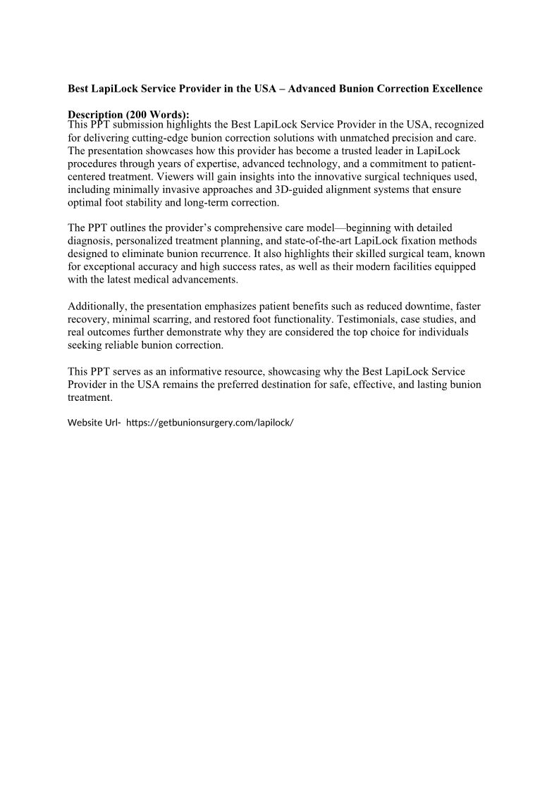 Best LapiLock Service Provider in the USA – Advanced Bunion Correction Excellence