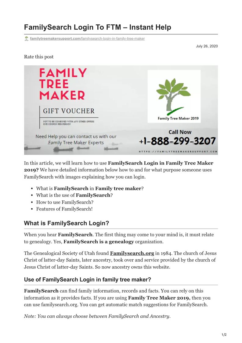 familytreemakersupport.com-FamilySearch Login To FTM Instant Help