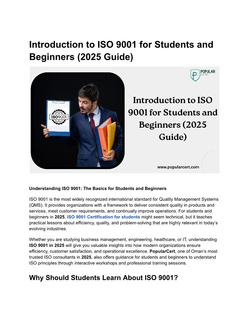 Introduction to ISO 9001 for Students and Beginners (2025 Guide)