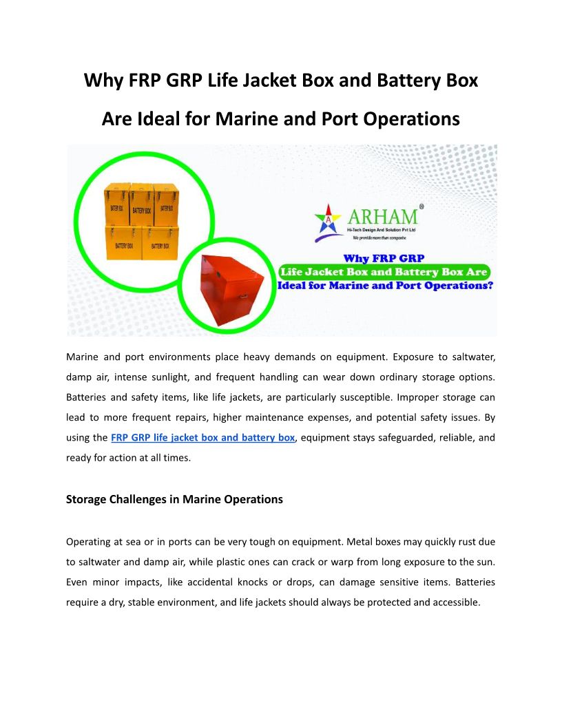 Why FRP GRP Life Jacket Box and Battery Box Are Ideal for Marine and Port Operations_