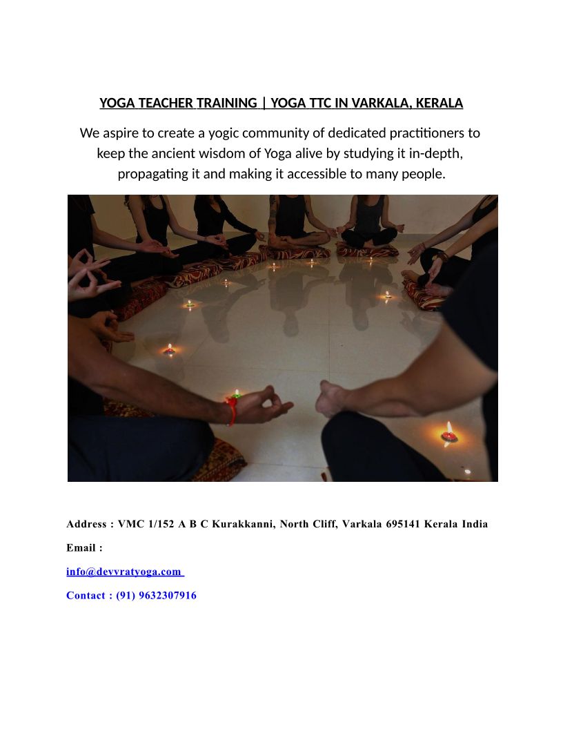 YOGA TEACHER TRAINING YOGA TTC IN VARKALA, KERALA