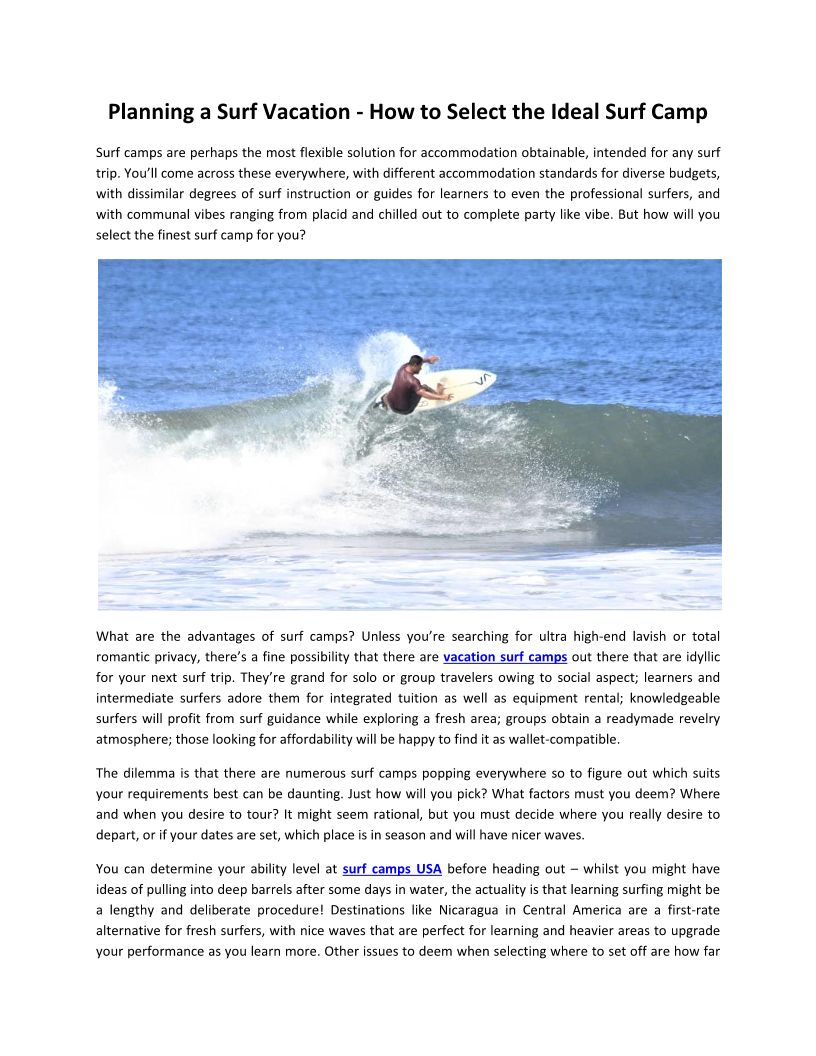 Planning a Surf Vacation - How to Select the Ideal Surf Camp