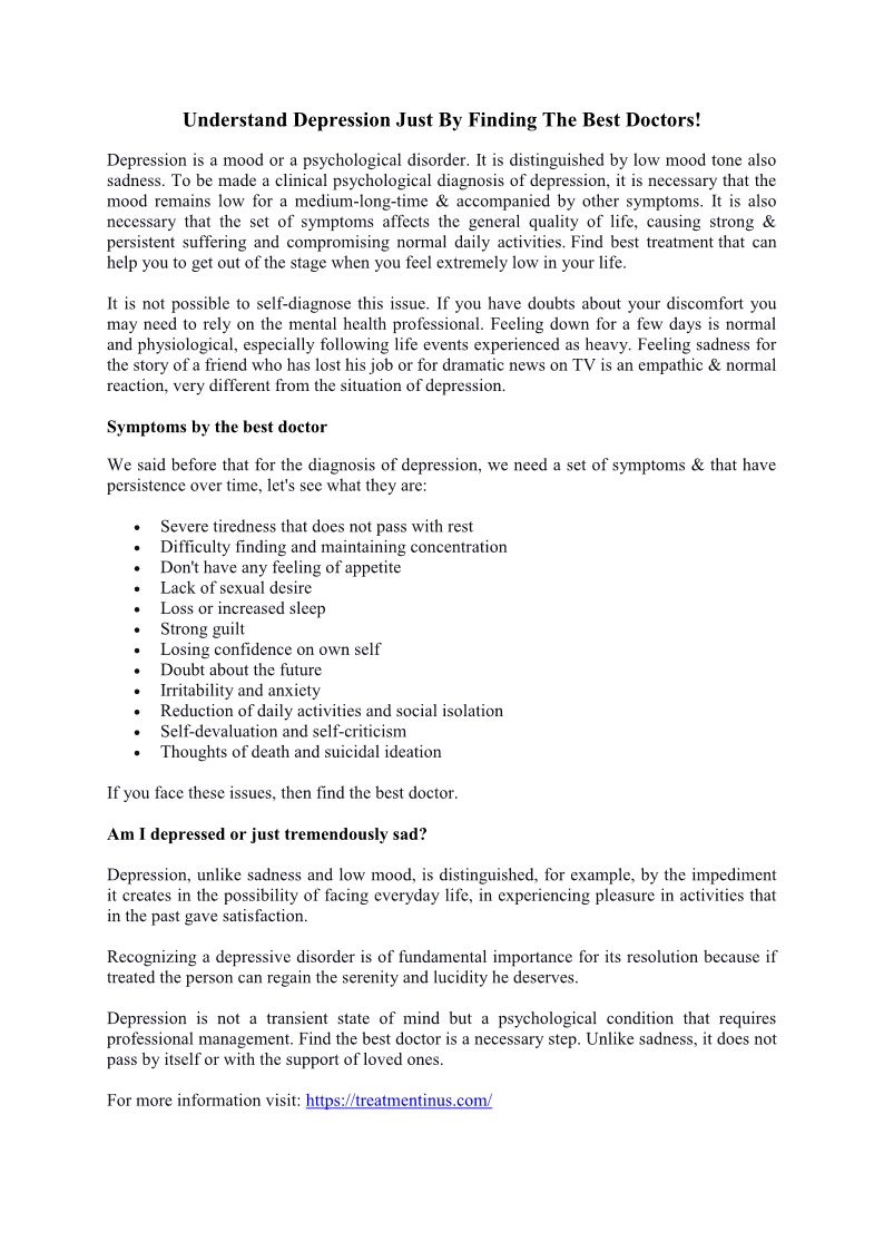 Understand Depression Just By Finding The Best Doctors!
