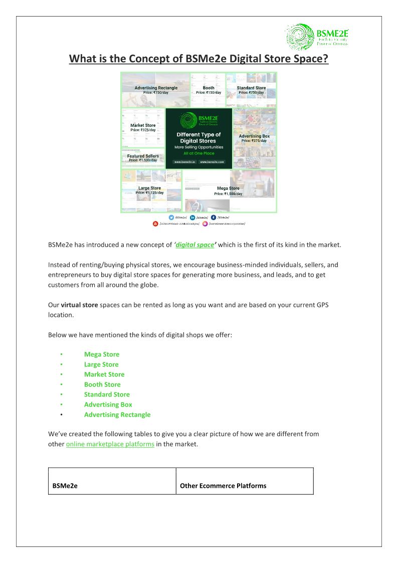 What is the concept of BSMe2e Digital Store Space