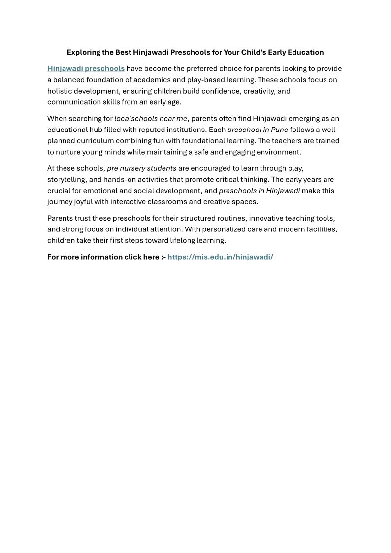 Exploring the Best Hinjawadi Preschools for Your Child’s Early Education