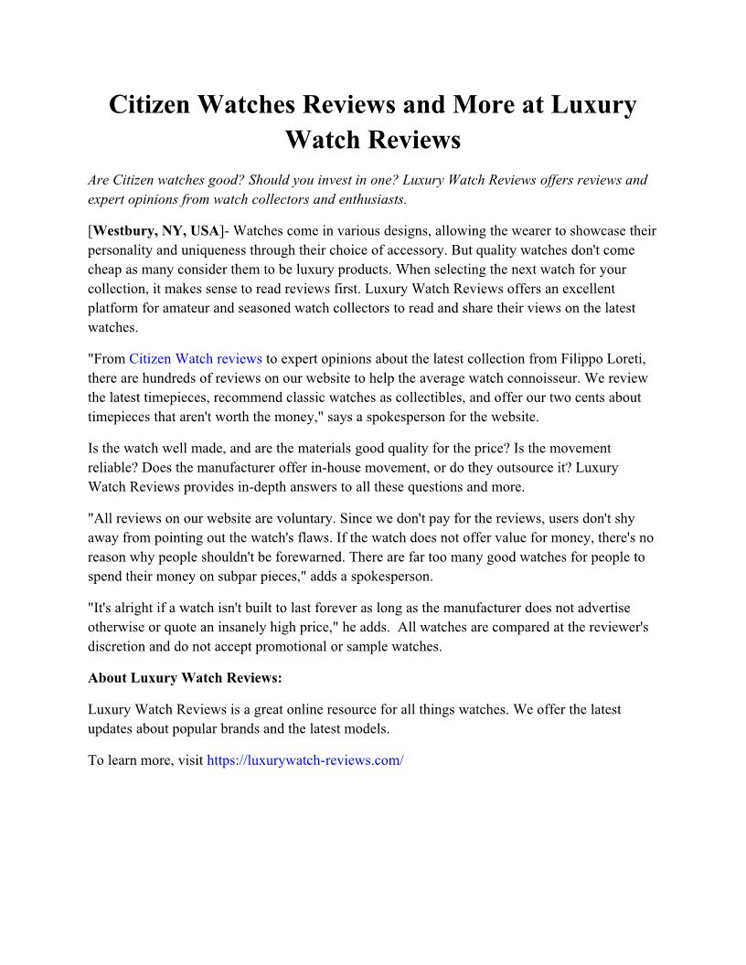 Citizen Watches Reviews and More at Luxury Watch Reviews