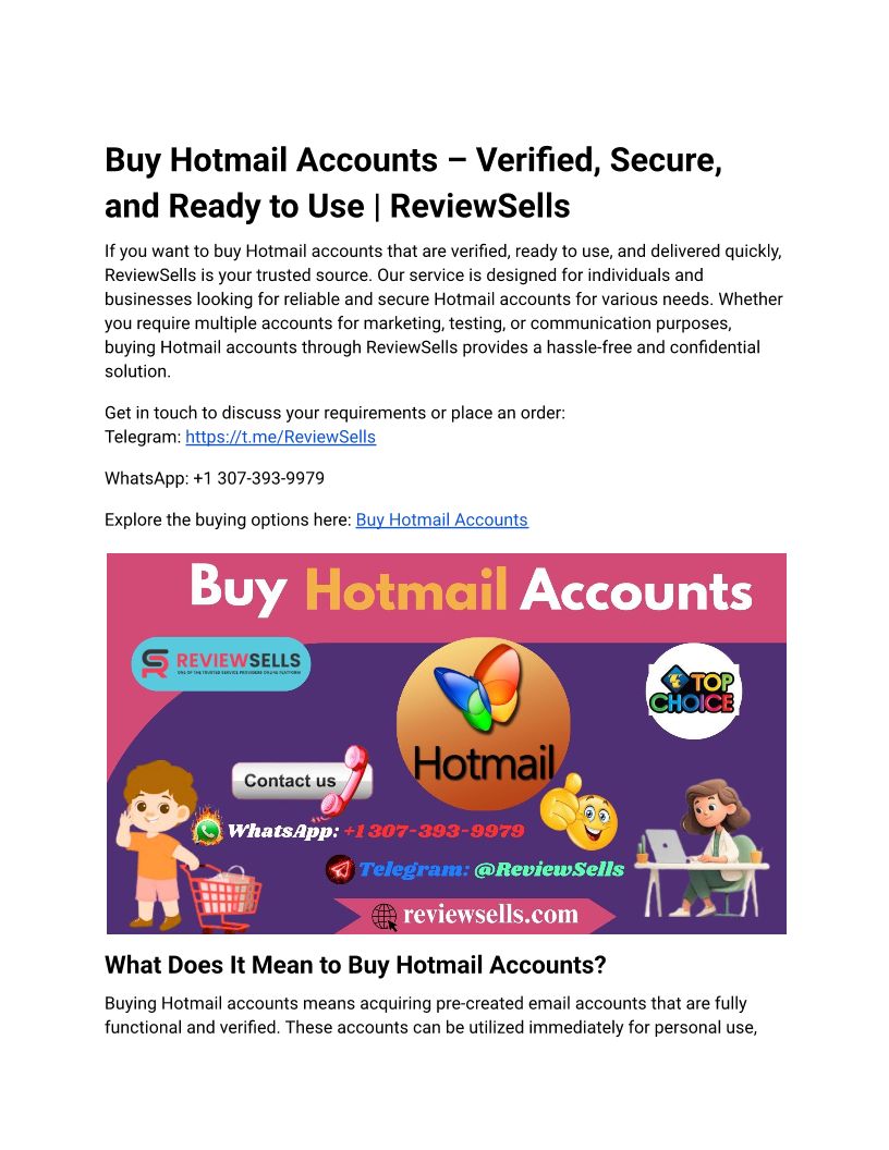 Buy Hotmail Accounts – Verified, Secure, and Ready to Use _ ReviewSells