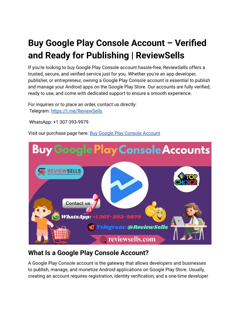 Buy Google Play Console Account – Verified and Ready for Publishing _ ReviewSells