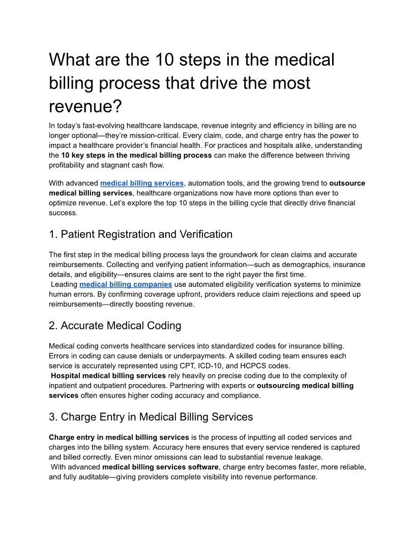 What are the 10 steps in the medical billing process that drive the most revenue