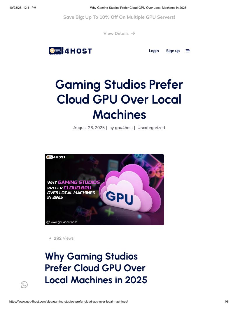 Why Gaming Studios Prefer Cloud GPU Over Local Machines in 2025