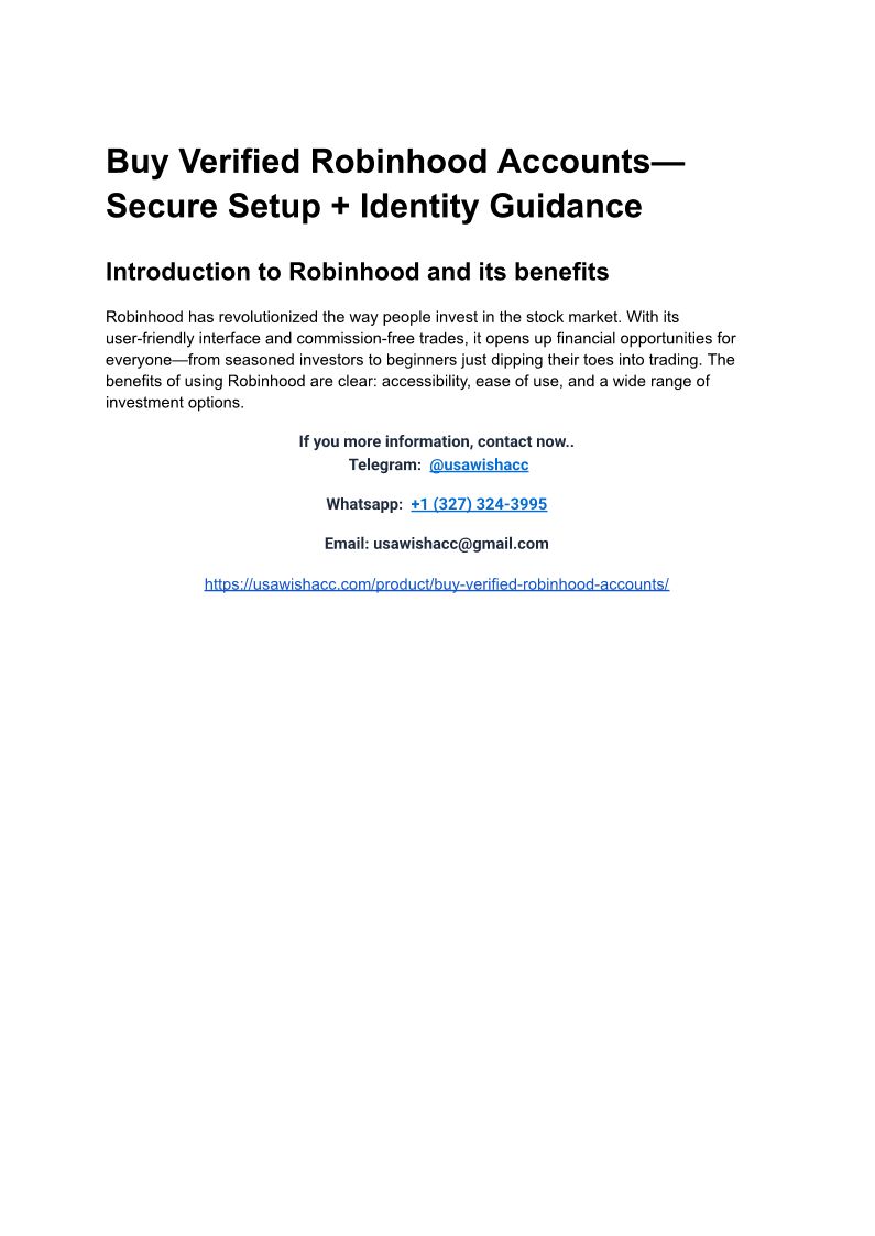 Buy Verified Robinhood Accounts— Secure Setup + Identity Guidance