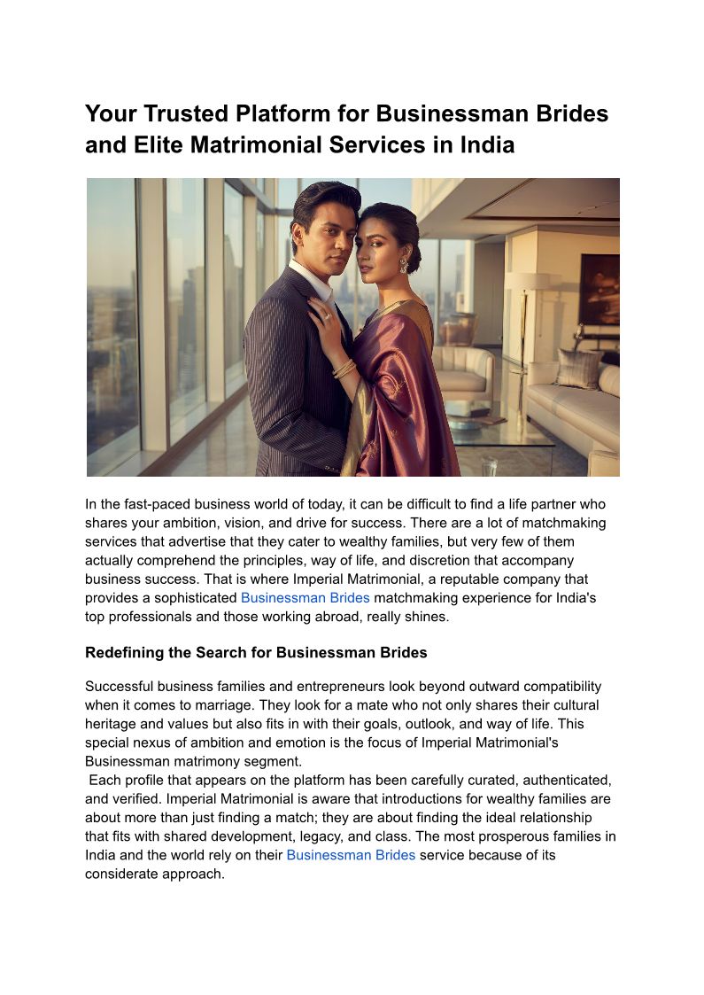 Your Trusted Platform for Businessman Brides and Elite Matrimonial Services in India