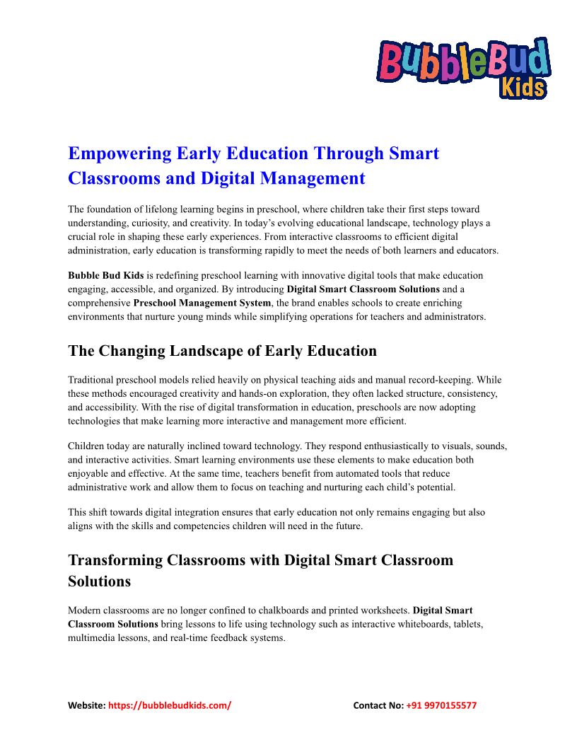Empowering Early Education Through Smart Classrooms and Digital Management
