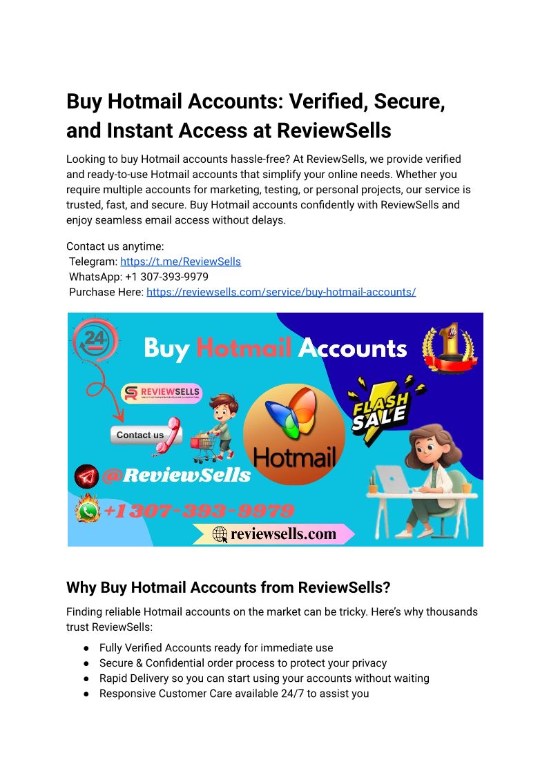 Buy Hotmail Accounts_ Verified, Secure, and Instant Access at ReviewSells