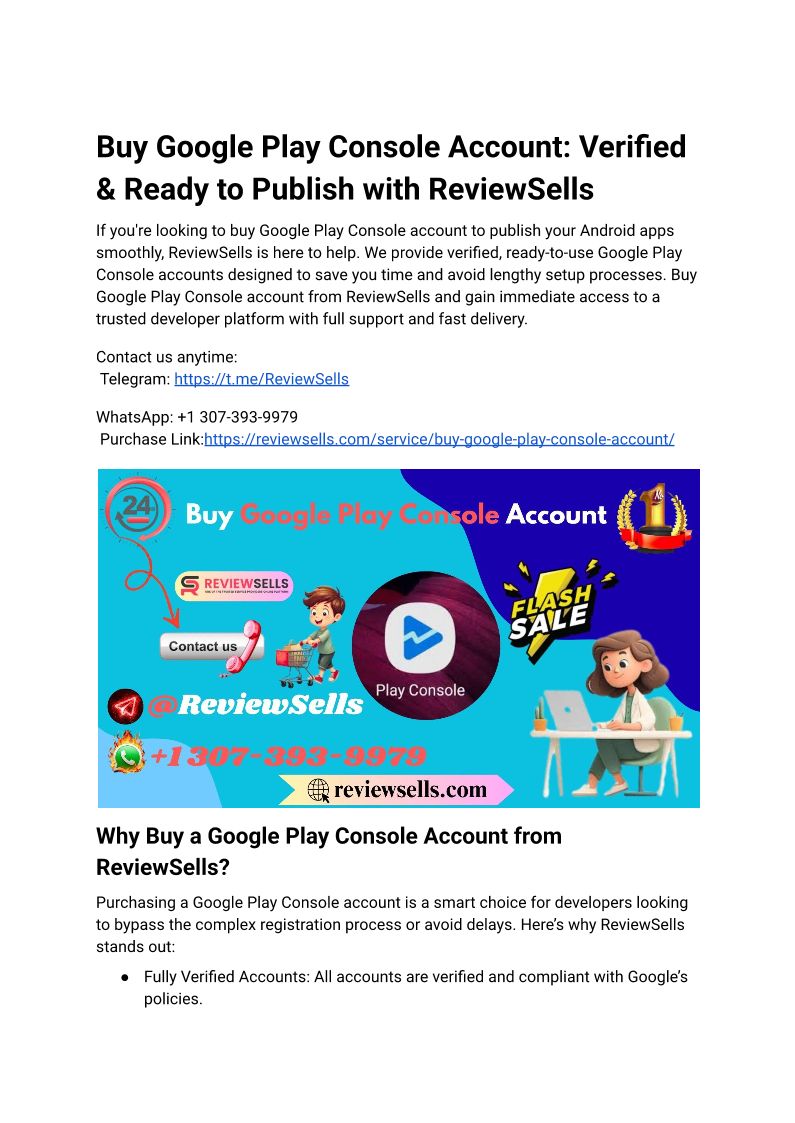 Buy Google Play Console Account_ Verified & Ready to Publish with ReviewSells