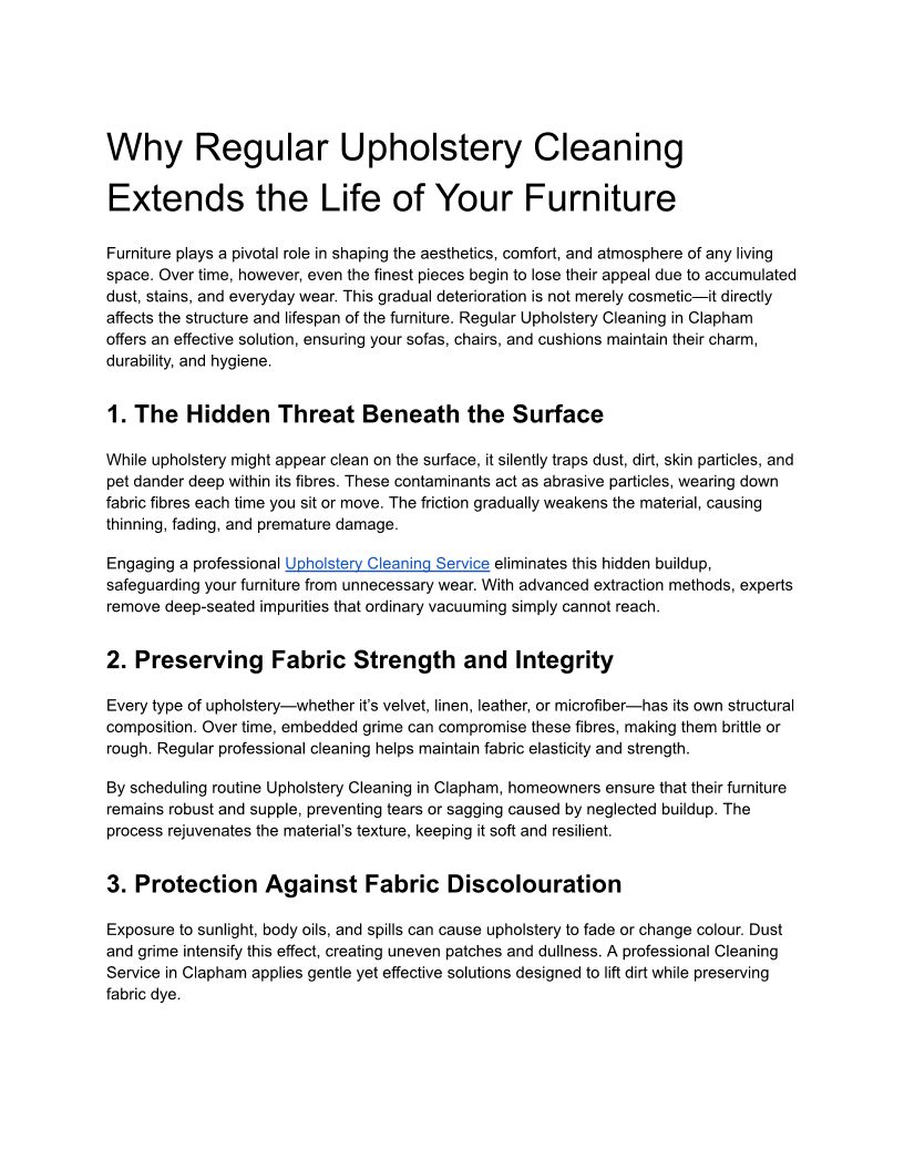 Why Regular Upholstery Cleaning Extends the Life of Your Furniture
