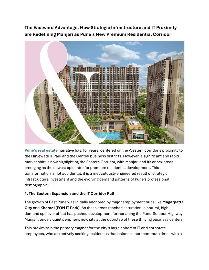 The Eastward Advantage- How Strategic Infrastructure and IT Proximity are Redefining Manjari as Pune’s New Premium Residential Corridor