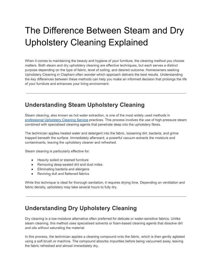 The Difference Between Steam and Dry Upholstery Cleaning Explained