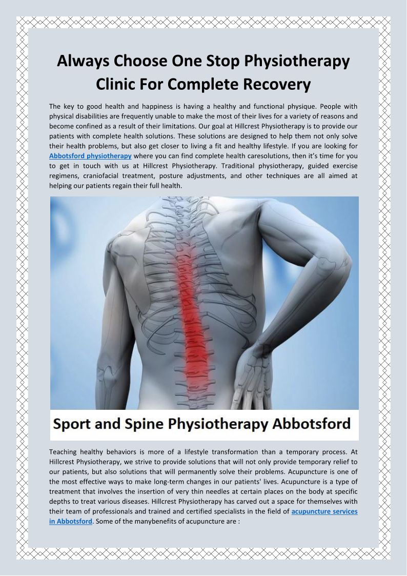 Always Choose One Stop Physiotherapy Clinic For Complete Recovery