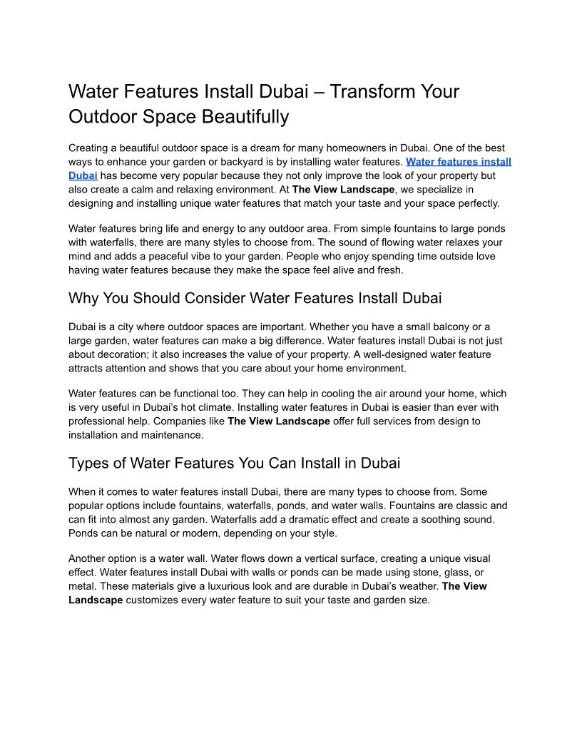 Water Features Install Dubai – Transform Your Outdoor Space Beautifully