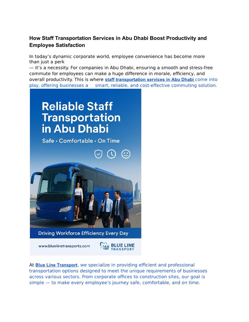 How Staff Transportation Services in Abu Dhabi Boost Productivity and Employee Satisfaction