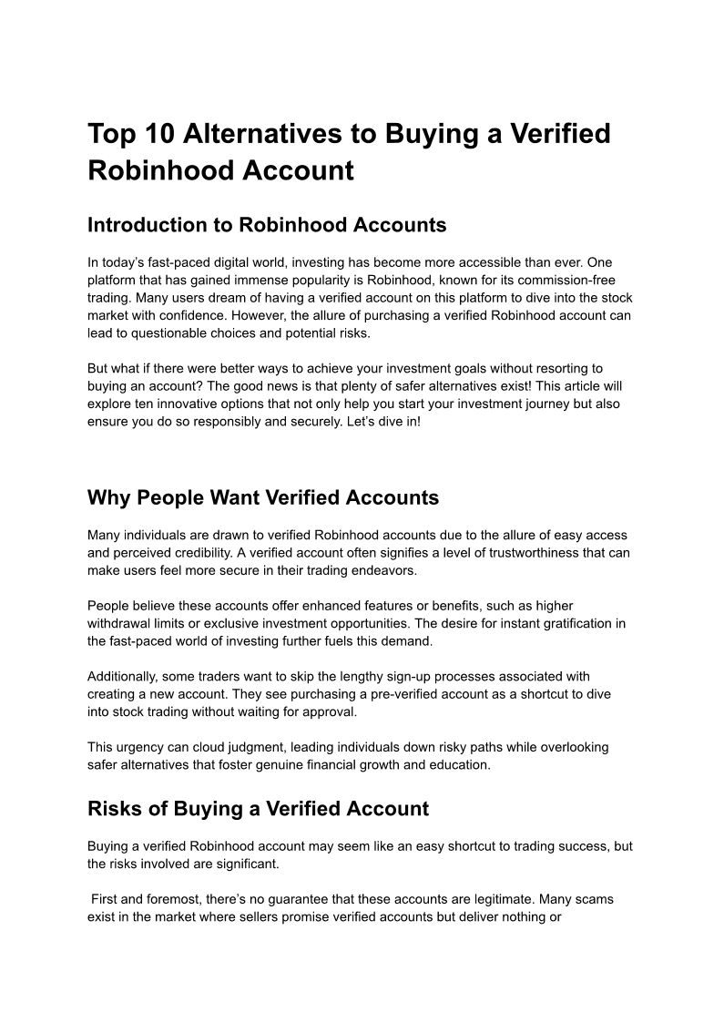 Top 10 Alternatives to Buying a Verified Robinhood Account