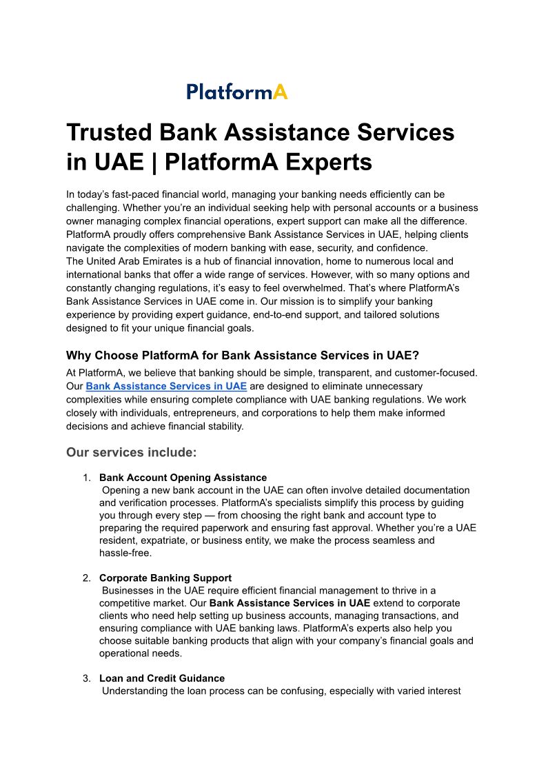 Trusted Bank Assistance Services in UAE _ PlatformA Experts