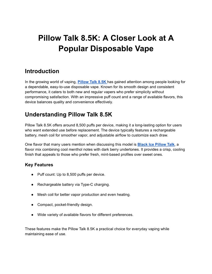 Pillow Talk 8.5K: A Closer Look at A Popular Disposable Vape